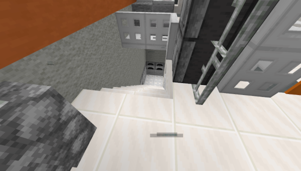 Go down the stairs in the other building